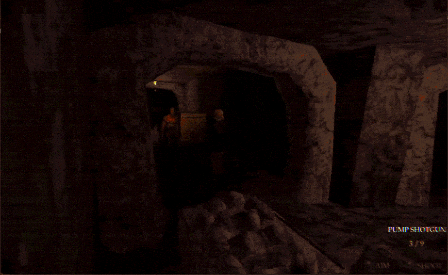This game is similar to games like Resident Evil on the PS1 with Fixed Cameras (with a mix of over the shoulder camera and first person), Inventory management, Storage Boxes, Tank Controls.